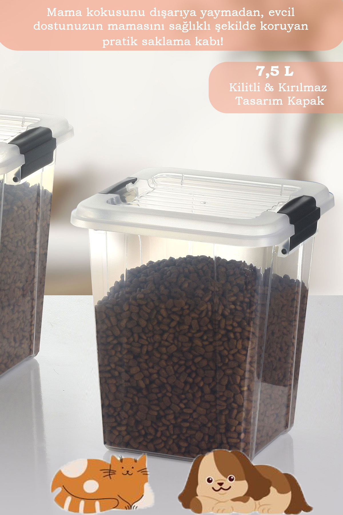 Evcil dostlarınızın sağlığı için tazelik ve hijyen çok önemli.; MOI Hava Almaz Mama Saklama Kabı ile hem düzenli bir mutfak hem sağlıklı bir mama saklama çözümü elinizin altında!Kilitli kapağı sayesinde hava ve nem geçirmez, mama uzun süre bayatlamadan muhafaza edilir.; Kedi, köpek veya diğer evcil hayvanların maması için idealdir.; Aynı zamanda bakliyat, erzak veya un gibi gıdalar için de kullanılabilir.; Ürün Özellikleri:Hava Almaz Kilitli Kapak: Özel kapak tasarımı sayesinde mama uzun süre taze kalır, böceklenme ve nem oluşmaz.7,5 Litre Geniş Hacim: Yaklaşık 2-3 kg mama saklama kapasitesiyle ekonomik paketler için idealdir.; Sağlam ve Dayanıklı Malzeme: BPA içermeyen, sağlığa zararsız kaliteli plastikten üretilmiştir.; Kolay Açılır/Kapanır: Pratik kapak sistemi ile kullanım kolaylığı sağlar.; Koku Yapmaz – Kolay Temizlik: Yüzeyi pürüzsüzdür, kolayca temizlenebilir.; Çok Amaçlı Kullanım: Mama dışında bakliyat, kahve, un, şeker gibi ürünlerin saklanması için de uygundur.; Ürün Ölçüleri:2 Adet – 7,5 Litre — 22 x 22 x 25 cm -SiyahKullanım Alanları:• Kedi maması saklama kutusu• Köpek kuru mama kabı• Evcil hayvan yemliği kutusu• Karavan, balkon veya kilerde düzenleyici• Kamp gibi taşınabilir ortamlar
