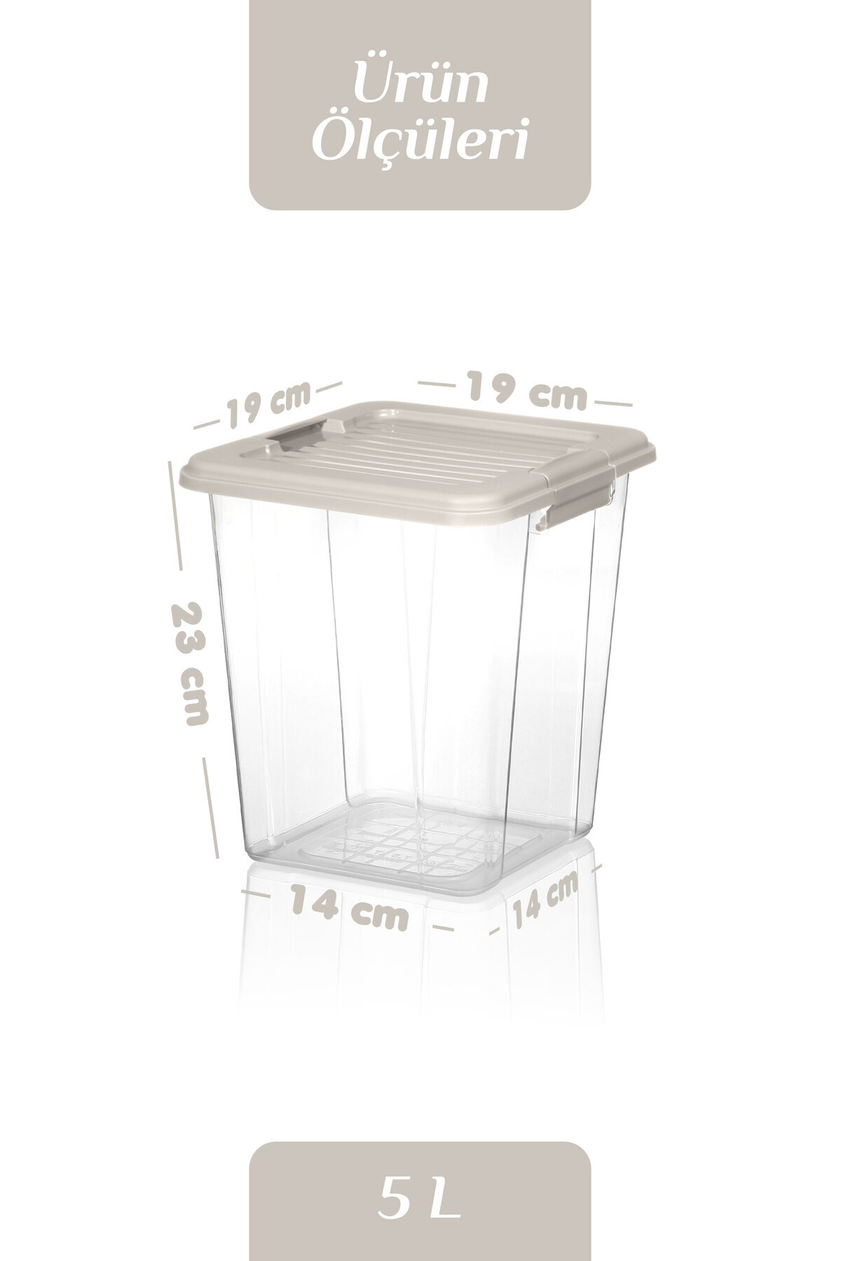 Düzenin ve pratikliğin markası Moi, mutfaktan banyoya, kilerden hobi alanlarına kadar hayatın her alanında size akıllı çözümler sunar.; Bu çok amaçlı derin saklama kutusu, un, bakliyat, erzak, deterjan, kırtasiye malzemeleri ve daha fazlasını güvenli ve hijyenik bir şekilde saklamanız için özel olarak tasarlandı.; Kilitli kapağı sayesinde hava ve nem geçirmez özelliğe sahiptir; bu da özellikle gıda ürünlerini uzun süre taze tutar.; Aynı zamanda deterjan ve temizlik ürünlerinin kokusunun dışarı çıkmasını engeller.; Şeffaf gövdesi ile içerisindeki ürünleri kolayca görebilir, ihtiyacınızı anında tespit edebilirsiniz.; Sadece mutfakta değil; kedi ve köpek maması, hırdavat malzemeleri, kırtasiye ve hobi ürünleri gibi birçok farklı alanda da güvenle kullanabilirsiniz.; İstiflenebilir ve ergonomik tasarımı, dar alanlarda bile maksimum düzen sağlar.; Ürün Özellikleri:• Hacim: 5 L – 2 Adet Derin Erzak Saklama Kabı – Bej• Ölçüler:◦ 5 L: 19,1 x 19,1 x 22,9 cmMalzeme: Sağlığa uygun, BPA içermeyen dayanıklı plastik• Kapak: Kilitli, hava ve sızdırma geçirmez yapı• Gövde: Şeffaf – kolay içerik takibi• Kullanım Alanları:◦ Un, şeker, tuz gibi temel gıdalar◦ Kuru bakliyat çeşitleri (mercimek, nohut, fasulye vb.; )◦ Toz deterjan ve temizlik ürünleri◦ Kedi ve köpek maması◦ Hırdavat, kırtasiye ve hobi malzemeleri• İstiflenebilir tasarım: Alan tasarrufu sağlar• Düzenli, hijyenik ve fonksiyonel bir yaşam alanı için pratik bir yardımcı!