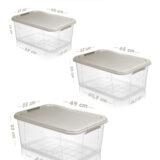 MOI 15-20-30 Lt Multibox Saklama Kabı, ev içi düzen ve hijyenin vazgeçilmez çözüm ortağı! Geniş hacmi, sağlam yapısı ve hava geçirmez kilitli kapağı ile gıda ve ev eşyalarını güvenle saklamanızı sağlar.; İster kilerde erzak, un, şeker, bakliyat, ister evcil hayvan mamaları, ister deterjan, oyuncak ya da hırdavat ürünleri için kullanın – tüm ihtiyaçlarınıza uyum sağlar.; Kilitli tasarımı sayesinde içerdiği malzemeleri dış etkenlerden korur; toz, nem, böcek gibi istenmeyen durumları engeller.; Üstelik kompakt ölçüleri sayesinde dolap içlerinde, raflarda kolayca kullanılabilir.; Ürün Ölçüleri ve Hacimleri: 3 farklı boy saklama kabı Bej• 15 Litre: 28,3 x 39,6 x 18 cm• 20 Litre: 31,7 x 45,3 x 19,9 cm• 30 Litre: 34,9 x 49,6 x 22,3 cmKullanım Alanları:• Erzak Kabı: Un, şeker, pirinç, mercimek, kuru gıda gibi malzemelerin muhafazası• Evcil Hayvan Mama Saklama: Kedi ve köpeklerin kuru mamaları uzun süre taze kalır• Deterjan Kabı: Toz veya tablet deterjanlar için idealdir• Hırdavat Kutusu: Vida, el aleti, tamirat malzemeleri gibi ürünlerin saklanması• Oyuncak Kutusu: Çocuk oyuncaklarını düzenli tutmak için• Kamp/Depolama: Kamp eşyaları, kampanyalı ürün stoklamaları için uygundurÜrün Özellikleri:• Kilitli Kapaklı – Hava Almaz Sistem• BPA İçermeyen Sağlıklı Malzeme• Taşıması Kolay, Hafif Yapı• Şeffaf Gövde ile İçerik Görünürlüğü• Dar Alanlara Uygun Kompakt Tasarım• Üst Üste İstiflenebilir