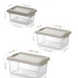 Mutfakta Düzen, MOI ile Mümkün!MOI 300-800-1800 ml kapasiteli kilit kapaklı saklama kabı, gıdalarınızı taze ve güvenli şekilde saklamanız için ideal bir mutfak yardımcısıdır.; Difriz ve buzdolabı kullanımına uygun tasarımıyla hem pişmiş hem çiğ gıdaların sağlıklı şekilde muhafazasını sağlar.; Gıdaların kokusunun yayılmasını ve dış kokuların içeri girmesini önleyen kapak sistemi sayesinde uzun süreli tazelik sunar.; Un, şeker, bakliyat gibi kuru gıdalar için erzak kabı olarak kullanılabilir; aynı zamanda buzdolabı düzenleyici olarak da yer kazanmanıza yardımcı olur.; Kilitli kapak sistemi sayesinde dökülmelere karşı ekstra koruma sağlar.; Yüksek hacimli yapısıyla kuru bakliyattan artan yemeklere, kahvaltılıklardan sebze-meyveye kadar birçok ürünü düzenli şekilde saklayabilirsiniz.; Çok amaçlı kullanıma uygun olarak kiler, avadanlık hırdavat, oyuncak, hobi, kırtasiye ürünleri gibi birçok farklı grupta saklama ve düzenleme kutusu olarak değerlendirebilirsiniz.; BPA içermeyen, dayanıklı plastikten üretilmiştir.; Şeffaf gövdesi sayesinde içerik kolayca görülebilir.; Ürün Özellikleri:• Kapasite: 300 ml + 800 ml + 1800 ml• Set İçeriği: 3 Adet Saklama Kabı Bej• Ölçüleri: • 300 ml: 9 x 12,1 x 5,8 cm• 800 ml: 12 x 15,7 x 7,8 cm• 1800 ml: 15,7 x 20 x 10,2 cm• Kullanım Alanı: Difriz, buzdolabı, kiler, yemek ve erzak saklama, deterjan saklama, oyuncak, hırdavat, kırtasiye, hobi• Kapak: Hava geçirmez, kilit sistemli• Malzeme: Sağlığa uygun, BPA içermeyen plastik• Temizlik: Elde ya da bulaşık makinesinde yıkanabilirAvantajları:✅ Difriz ve buzdolabı için ideal✅ Gıdaları uzun süre taze tutar✅ Koku geçirmez kilitli kapak sistemi✅ Şeffaf ve pratik tasarım✅ Yüksek hacimli, geniş iç alan