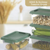 Mutfakta Düzen, MOI ile Mümkün!MOI 1800 ml kapasiteli kilit kapaklı saklama kabı, gıdalarınızı taze ve güvenli şekilde saklamanız için ideal bir mutfak yardımcısıdır.; Difriz ve buzdolabı kullanımına uygun tasarımıyla hem pişmiş hem çiğ gıdaların sağlıklı şekilde muhafazasını sağlar.; Gıdaların kokusunun yayılmasını ve dış kokuların içeri girmesini önleyen kapak sistemi sayesinde uzun süreli tazelik sunar.; Un, şeker, bakliyat gibi kuru gıdalar için erzak kabı olarak kullanılabilir; aynı zamanda buzdolabı düzenleyici olarak da yer kazanmanıza yardımcı olur.; Kilitli kapak sistemi sayesinde dökülmelere karşı ekstra koruma sağlar.; Yüksek hacimli yapısıyla kuru bakliyattan artan yemeklere, kahvaltılıklardan sebze-meyveye kadar birçok ürünü düzenli şekilde saklayabilirsiniz.; BPA içermeyen, dayanıklı plastikten üretilmiştir.; Şeffaf gövdesi sayesinde içerik kolayca görülebilir.; Ürün Özellikleri:• Kapasite: 1800 ml Mint• Set İçeriği: 4 Adet Saklama Kabı• Ölçüleri: 15,7 x 20 x 10,2 cm• Kullanım Alanı: Difriz, buzdolabı, kiler, yemek ve erzak saklama• Kapak: Hava geçirmez, kilit sistemli• Malzeme: Sağlığa uygun, BPA içermeyen plastik• Temizlik: Elde ya da bulaşık makinesinde yıkanabilirAvantajları:✅ Difriz ve buzdolabı için ideal✅ Gıdaları uzun süre taze tutar✅ Koku geçirmez kilitli kapak sistemi✅ Şeffaf ve pratik tasarım✅ Yüksek hacimli, geniş iç alan