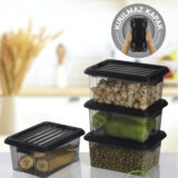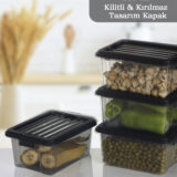 MOI ile mutfağınızda düzen, sağlık ve stil bir arada! MOI 4’lü saklama kabı seti, mutfağınızda düzeni ve hijyeni bir arada sunar.; 800 ml kapasitesiyle kuru bakliyat, kahvaltılık ürünler, artan yemekler ya da derin dondurucuda saklanacak gıdalar için ideal bir çözümdür.; Difriz ve buzdolabı kullanımına uygundur.; Kilitli kapak sistemi sayesinde içeriği uzun süre taze tutar; koku karışmasını önler.; Ürünlerinizi güvenle saklamanıza yardımcı olur.; BPA içermeyen dayanıklı plastikten üretilmiştir.; Şeffaf gövdesi sayesinde içerik kolayca görülebilir.; Ürün Özellikleri:• Set İçeriği: 4 adet saklama kabı Siyah• Kapasite: Her biri 800 ml• Ölçüleri: 12 x 15,7 x 7,8 cm• Malzeme: BPA içermeyen, sağlam plastik• Kullanım Alanı: Difriz, buzdolabı, kiler, raf düzenleme, yemek saklama• Kapak: kilit kapaklı tasarım• Temizlik: Elde ya da bulaşık makinesinde yıkanabilirAvantajları:✅ Dondurucu ve buzdolabı için ideal✅ Şeffaf gövde sayesinde içerik görünürlüğü✅ Pratik ve istiflenebilir tasarım✅ Kamp, piknik, ofis gibi alanlarda taşınabilir çözüm Kamp, piknik, ofis gibi alanlarda taşınabilir çözüm lunch box