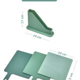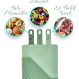 Ürün Ölçüleri ve Paket İçeriği: Yeşil1 adet kulplu kesme tahtası standı: 3 adet kesme tahtası: MOI 3’lü Standlı Kesme Tahtası Seti, mutfakta hijyen ve işlevselliği bir araya getiren özel bir tasarımdır.; Her biri farklı gıda grupları için ikonlarla etiketlenmiş olan bu tahtalar, çapraz bulaşmayı önleyerek daha sağlıklı yemek hazırlığı yapmanıza yardımcı olur.; 🔸 3 Ayrı Tahta, 3 Ayrı GörevEkmek, sebze/meyve ve çiğ et için özel olarak ayrılmış kesme tahtaları sayesinde mutfakta maksimum hijyen sağlar.; Üst kısmındaki ikonlar sayesinde hangi tahtanın hangi gıdada kullanılacağı net bir şekilde anlaşılır.; Kaymaz ve Sağlam YüzeyYüzey yapısı bıçak kaymalarını azaltır ve güvenli doğrama sunar.; Dayanıklı yapısıyla uzun süreli kullanım sağlar.; Modern ve Kompakt StandTahtaları düzenli ve hijyenik şekilde muhafaza etmenizi sağlayan özel standı, mutfak tezgahınızda hem az yer kaplar hem de şık bir görüntü sunar.; BPA İçermez – Gıda Dostu MalzemeGüvenle kullanabileceğiniz kaliteli plastik malzeme, sağlığınızı ön planda tutar.; Kolayca elde ya da bulaşık makinesinde yıkanabilir.; Kullanım Alanları:✔ Ev mutfakları✔ Kamp, karavan, piknik✔ Restoran ya da butik mutfaklar✔ Yeni ev hediyesiÜrün Özellikleri:• Set İçeriği: 3 adet renk kodlu kesme tahtası + 1 adet stand• Malzeme: Dayanıklı ve BPA içermeyen plastik• Kullanım: Çok amaçlı doğrama (et, sebze, ekmek)• Temizlik: Bulaşık makinesine uygundur• Yer tasarrufu sağlayan tasarımMOI ile mutfağınızda düzen, sağlık ve stil bir arada! Bu kompakt set sayesinde mutfağınızda hem profesyonel bir görünüm elde edin hem de günlük yemek hazırlığınızı daha hijyenik hale getirin.