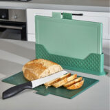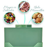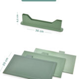 Ürün Ölçüleri ve Paket İçeriği: Yeşil1 adet yatay kesme tahtası standı: 3 adet kesme tahtası: MOI 3’lü Standlı Kesme Tahtası Seti, mutfakta hijyen ve işlevselliği bir araya getiren özel bir tasarımdır.; Her biri farklı gıda grupları için ikonlarla etiketlenmiş olan bu tahtalar, çapraz bulaşmayı önleyerek daha sağlıklı yemek hazırlığı yapmanıza yardımcı olur.; 🔸 3 Ayrı Tahta, 3 Ayrı GörevEkmek, sebze/meyve ve çiğ et için özel olarak ayrılmış kesme tahtaları sayesinde mutfakta maksimum hijyen sağlar.; Üst kısmındaki ikonlar sayesinde hangi tahtanın hangi gıdada kullanılacağı net bir şekilde anlaşılır.; Kaymaz ve Sağlam YüzeyYüzey yapısı bıçak kaymalarını azaltır ve güvenli doğrama sunar.; Dayanıklı yapısıyla uzun süreli kullanım sağlar.; Modern ve Kompakt StandTahtaları düzenli ve hijyenik şekilde muhafaza etmenizi sağlayan özel standı, mutfak tezgahınızda hem az yer kaplar hem de şık bir görüntü sunar.; BPA İçermez – Gıda Dostu MalzemeGüvenle kullanabileceğiniz kaliteli plastik malzeme, sağlığınızı ön planda tutar.; Kolayca elde ya da bulaşık makinesinde yıkanabilir.; Kullanım Alanları:✔ Ev mutfakları✔ Kamp, karavan, piknik✔ Restoran ya da butik mutfaklar✔ Yeni ev hediyesiÜrün Özellikleri:• Set İçeriği: 3 adet renk kodlu kesme tahtası + 1 adet stand• Malzeme: Dayanıklı ve BPA içermeyen plastik• Kullanım: Çok amaçlı doğrama (et, sebze, ekmek)• Temizlik: Bulaşık makinesine uygundur• Yer tasarrufu sağlayan tasarımMOI ile mutfağınızda düzen, sağlık ve stil bir arada! Bu kompakt set sayesinde mutfağınızda hem profesyonel bir görünüm elde edin hem de günlük yemek hazırlığınızı daha hijyenik hale getirin.